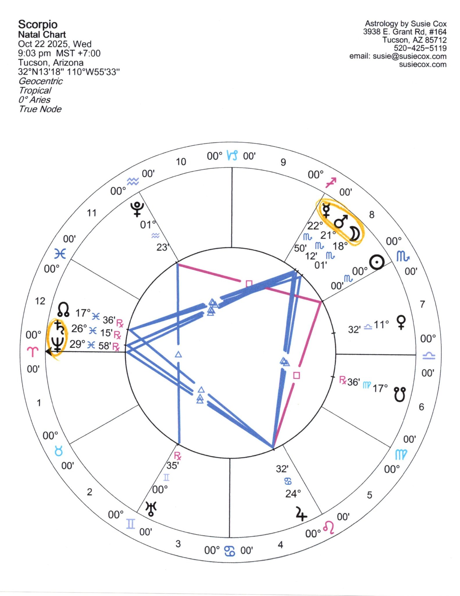 This Water Grand Trine is particularly favorable for personal growth with healing old trauma. Trust your intuitive power and build emotional strength. This is an auspicious time to launch creative or spiritual ventures.
